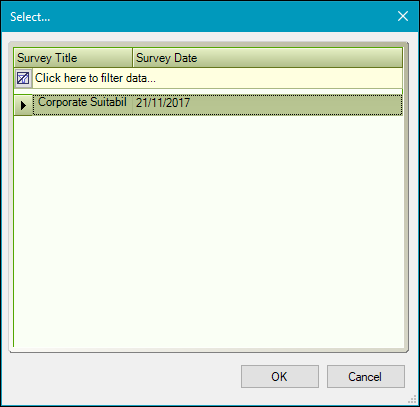 Select an existing Audit Survey - displays the Select window, where you can select from a list of existing surveys to open.