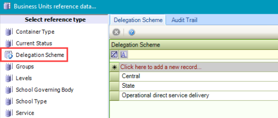 The Business Units reference data window can be accessed by navigating to Functions > Core > Reference Data > Business Units, Organisation > Business Unit > Business Unit, or by clicking Manage Reference Data in the Tasks panel of a Business Unit Record..