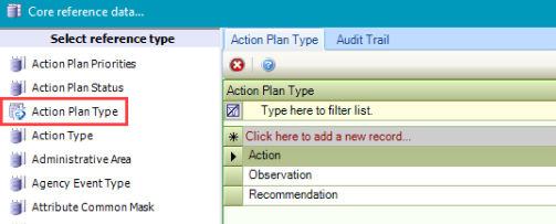 Use this reference data to define types of action plans (for example: Action, Observation and Recommendation).