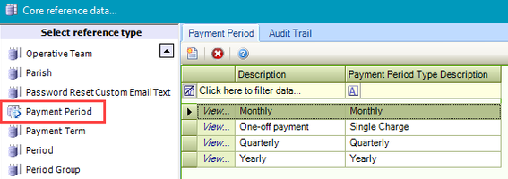 Use this reference data to define payment periods (for example: monthly, quarterly, yearly and so on).