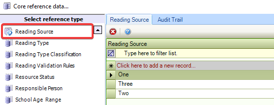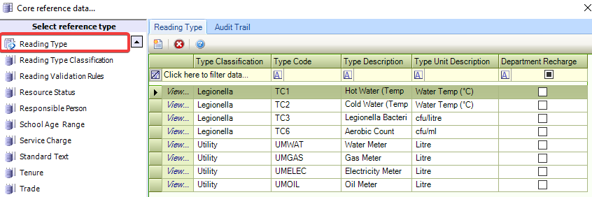 Use this reference data to define reading types.