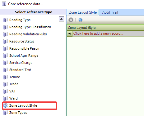 To add a new Zone Layout Style, enter text into the * Click here to add a new record… field.