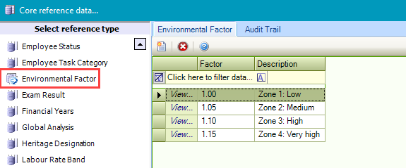 Use this reference data to define environmental factors, which are recorded on the Site Editor and record things such as pH, temperature, dissolved oxygen, salinity and so on.