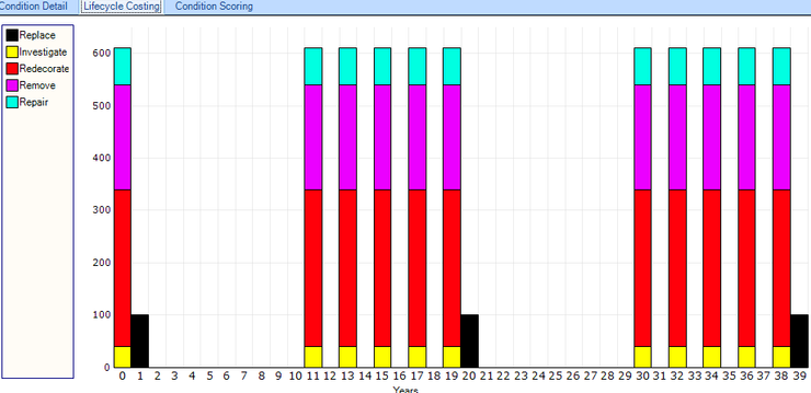 Use the Lifecycle Costing tab to define the costs and frequency of replacement for each action.