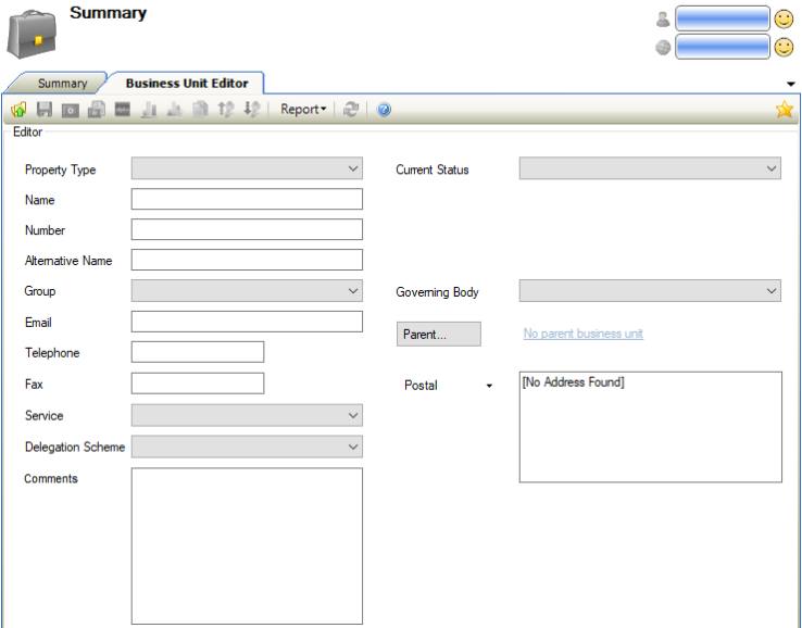 Current Status | The status of the business unit. These can be defined in the Current Status Reference Data (accessed by navigating to Functions > Core > Reference Data > Business Units or Organisation > Business Unit > Business Unit). |