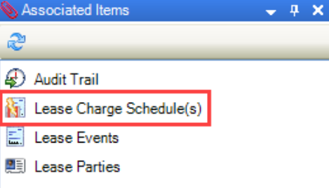 Alternatively, click the Lease Charge Schedule(s) option in the Associated Items panel and double-click an existing record to open it.
