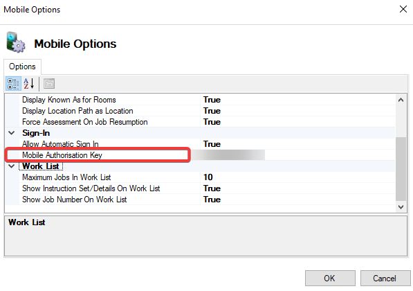 Mobile Authorisation Key. | Authorisation key that is used to securely communicate with the server. ![]() ![]() It is recommended that the key contains letters and numbers and is between 10 and 36 characters. |