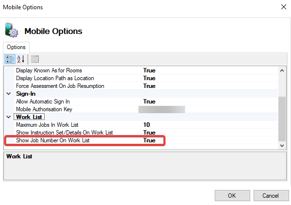 Show Job Number on Work List. | When set to True, the job number will be displayed on each item in the work list. ![]() ![]() ![]() |