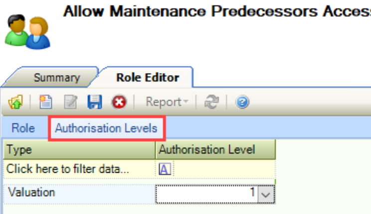 Click the Authorisation Levels tab.