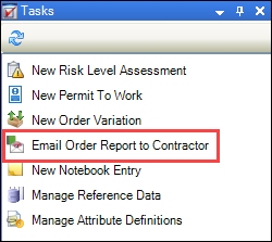 The order report can be emailed to a contractor directly from K2, provided that the contractor has a valid email address in the Contact Details section on the Agency Editor. Refer to Adding or Editing an Agency for further information.