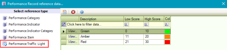 The Performance Record reference data window can be accessed by navigating to Functions > Core > Reference Data > Performance Record.