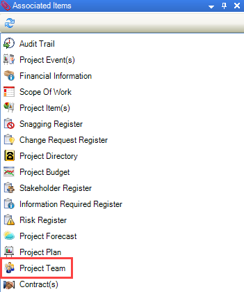 The Project Team List allows you to manage the members of the team on the project and their roles.