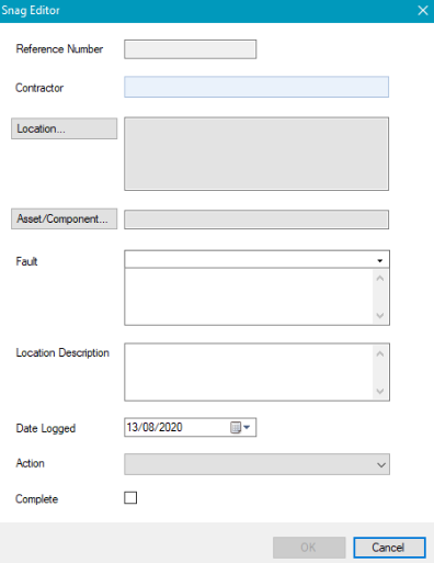 Action | The action that has been taken to address the snag. This field is mandatory. These can be defined in Condition Actions Reference Data (accessed by navigating to Maintenance > Projects > Projects) |