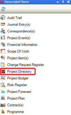 Click on the Project Directory option in the Associated Items panel of a project record.