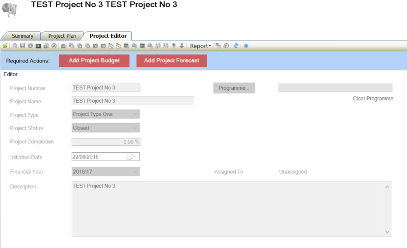 Financial Year | The financial year to which the project belongs. These can be defined in Financial Years Reference Data (accessed by navigating to Functions > Core > Reference Data > Core). |