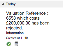 A notification denoting that a valuation has been submitted is generated in the Notifications List for all users who have the required authorisation level.