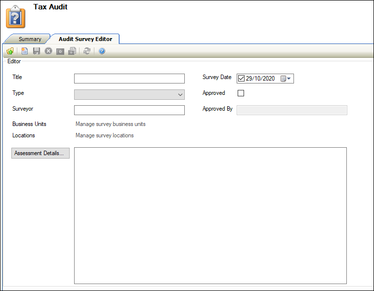 The fields on the Audit Survey Editor are described in the following table: