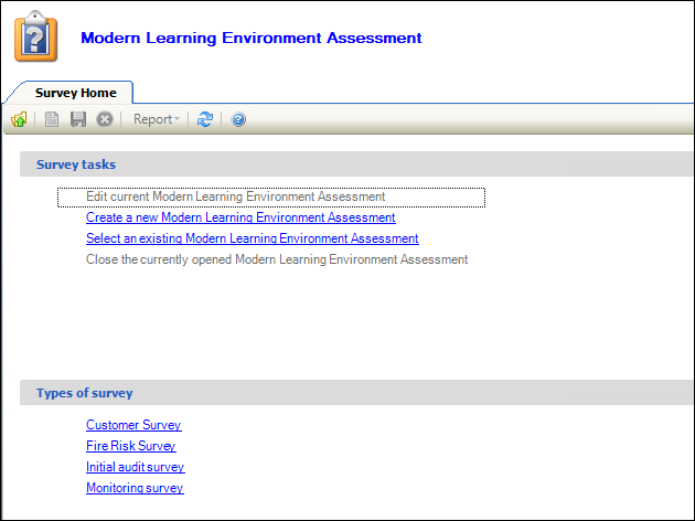 If you selected an existing survey from the Survey Home, the Surveyor Workspace screen is displayed.