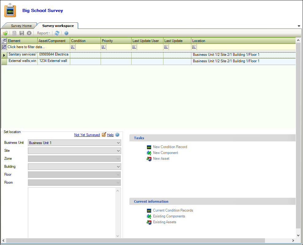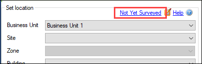 Edit the survey status of the location (that is: Surveyed, Unable to survey, Not Yet Surveyed) by clicking the link in the top right-hand corner of the Set location section