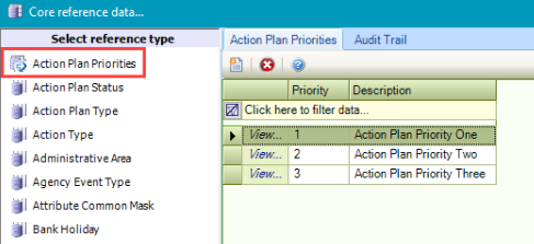 Use this reference data to define the priorities (for example: Priority 1 for the most important, then Priority 2, Priority 3, and so on) of work required for action plans.