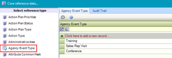 Use this reference data to define types of agency events.