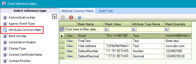 Use this reference data to define masks for attributes to force the formatting of a number or string.