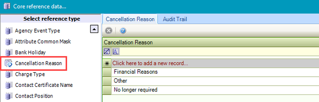 Use this reference data to define reasons for cancelling a request.