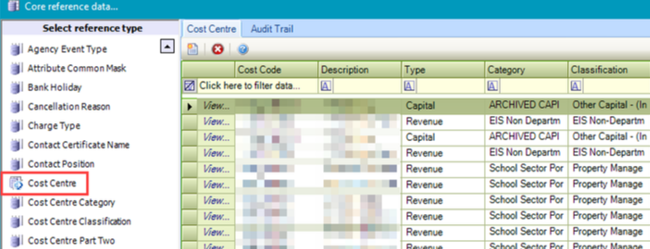 Classification | The cost centre classification. These are defined in the Cost Centre Classification reference data. |