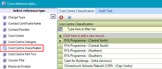 Use this reference data to define cost centre classifications. A classification is the same as a category but independent. It is used for reporting purposes (for example: a classification of hardware can be used within the category of IT for reporting purposes).