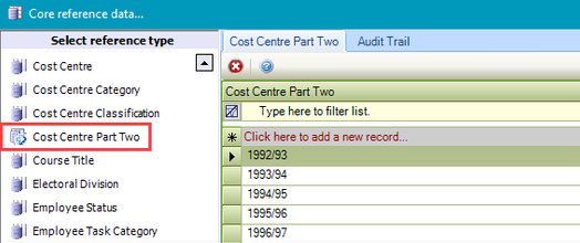Use this reference data to define a second part of a cost centre for when a cost centre is required to be split.