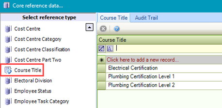 Use this reference data to define courses that staff have undertaken.