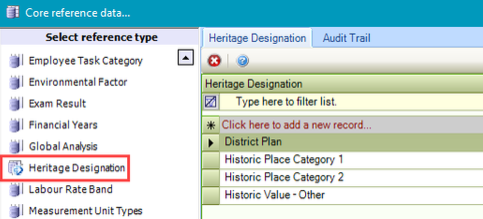 Use this reference data to define heritage designations for sites (for example: World Heritage Site, Scheduled Monuments, Listed Buildings and so on).