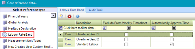 Use this reference data to define labour rate bands (for example: for standard labour, overtime and so on).
