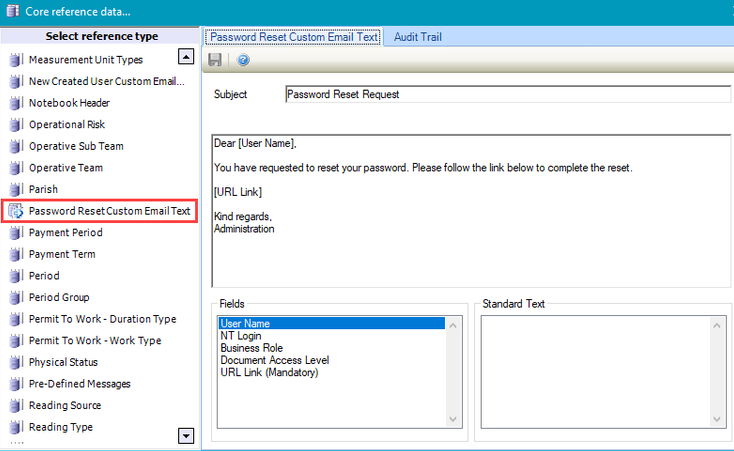 Use this reference data to define the text for password reset emails.