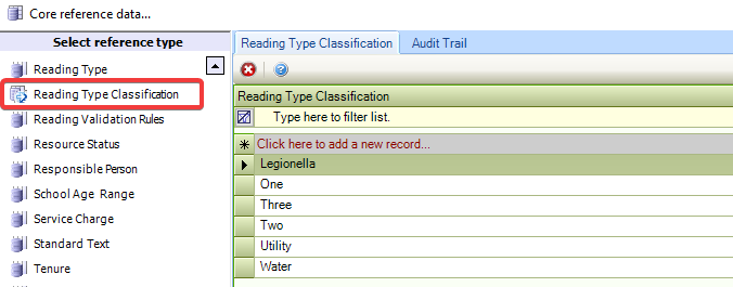 Use this reference data to define reading type classifications (for example: water, gas, electricity and so on).