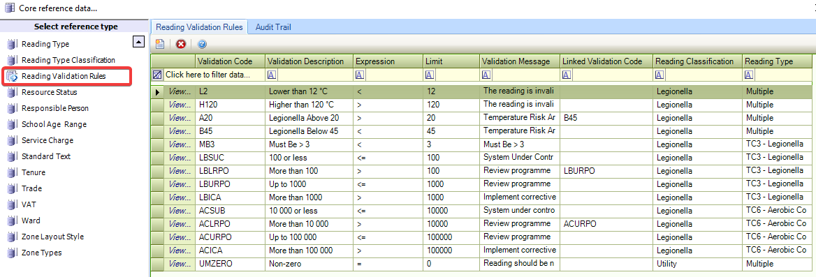 Use this reference data to create validation rules for readings.