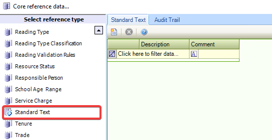 Refer to Managing Reference Data for further information on using reference data screens.