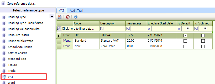 Use this reference data to define VAT rates.