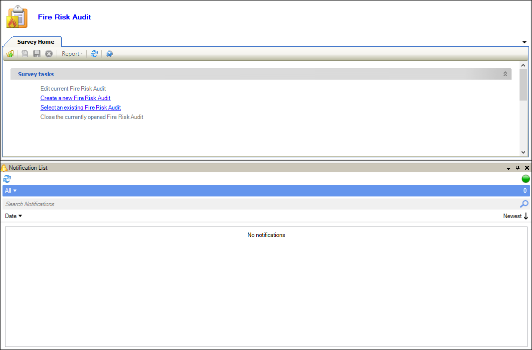 If you selected an existing condition survey from the Survey Home, the Surveyor Workspace screen is displayed.