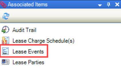 Alternatively, click the Lease Events option in the Associated Items panel and then double-click an existing record to open it.