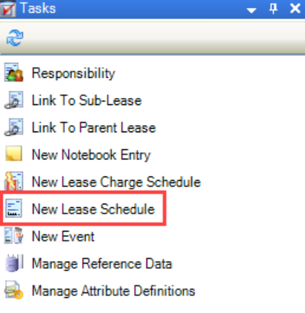 Click the New Lease Charge Schedule option in the Tasks panel.