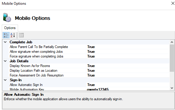 Mobile Authorisation Key. | Authorisation key that is used to securely communicate with the server. ![]() ![]() It is recommended that the key contains letters and numbers and is between 10 and 36 characters. |