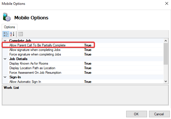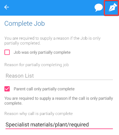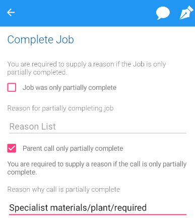 Allow Parent Call to be partially complete. | Allows the mobile application to set a Jobs parent call to be partially complete. ![]() ![]() |