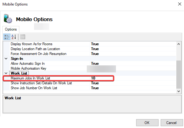 Maximum Jobs in Work List. | The maximum number of jobs allowed in the phone work list. ![]() ![]() When over 10 jobs are assigned, the additional Jobs will only appear once existing Jobs are cleared from the queue. |