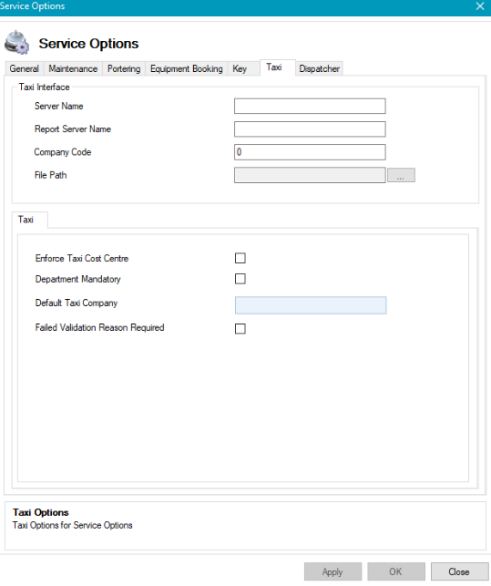 Enforce Taxi Cost Centre | Whether a cost centre is mandatory for taxi service requests. |