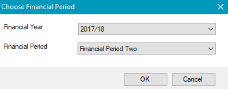 Select the relevant Financial Year and Financial Period from the drop-downs, and then click OK.