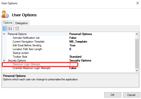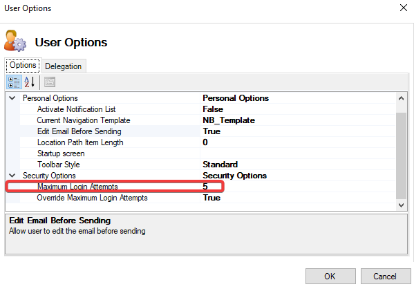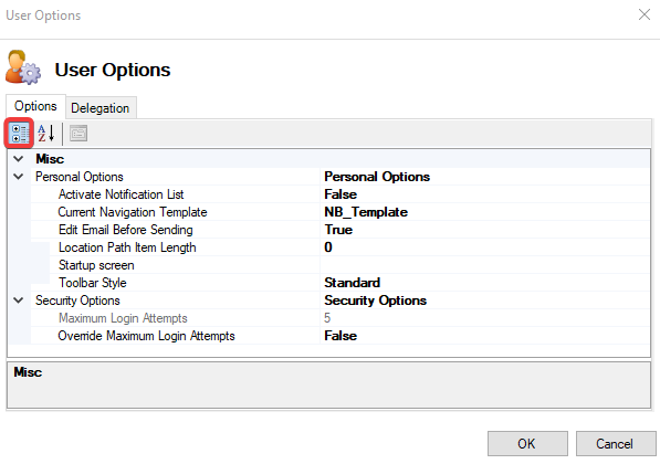 Values displayed in regular font are system defaults, while values displayed in bold are not the default value.