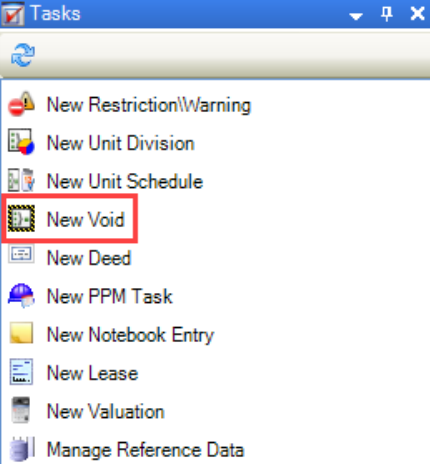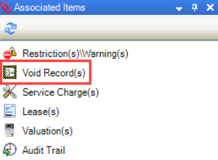 Alternatively, click the Void Record(s) option in the Associated Items panel, and then double-click the relevant existing record in the Void List.