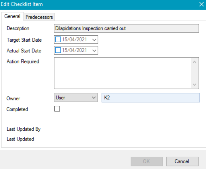 Last Updated | The date the checklist item was last updated. This is automatically populated with today's date on saving and cannot be edited. |