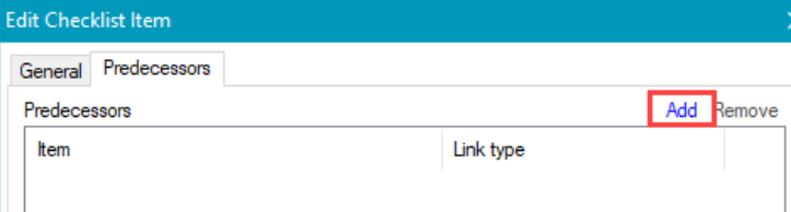 Select the Predecessors tab, and then click the Add button or double-click an existing predecessor record to edit it.